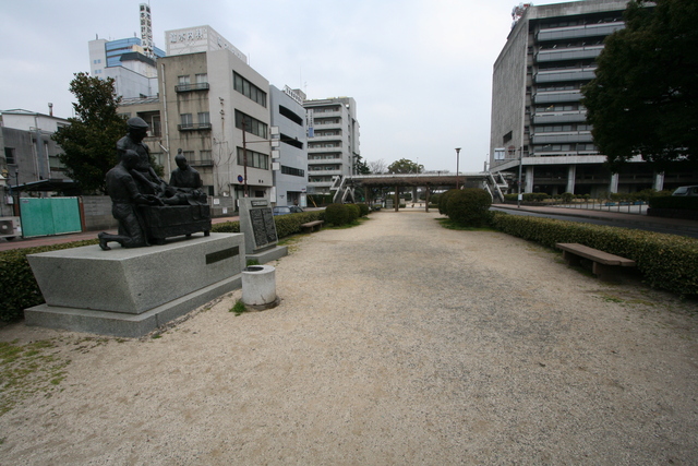 県庁舎前の通りに沿った遊歩道状の公園。大分の地において南蛮文化が繁栄していたことを物語る銅像が数多く建立されている。